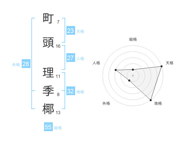 町頭 理季椰さんの天格は23画の5点!