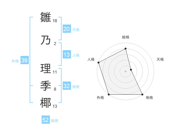 雛乃 理季椰さんを姓名の画数から五運を鑑定