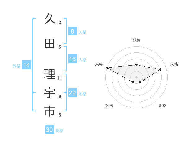 久田 理宇市さんを姓名の画数から五運を鑑定