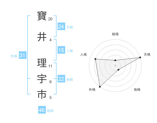 寶井 理宇市さんを姓名の画数から五運を鑑定