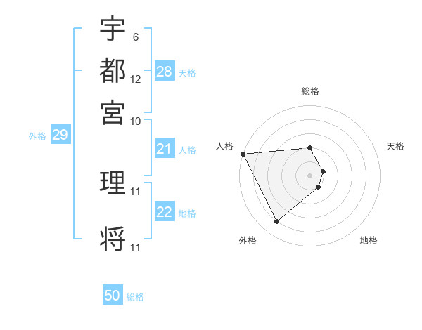 宇都宮 理将さんを姓名の画数から五運を鑑定