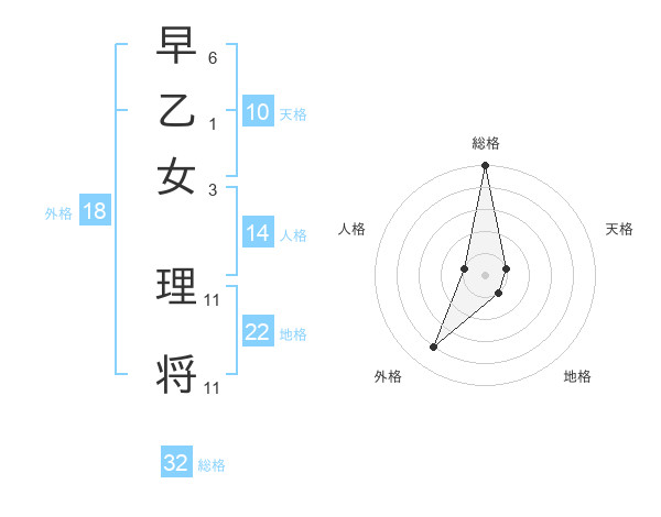 早乙女 理将さんを姓名の画数から五運を鑑定