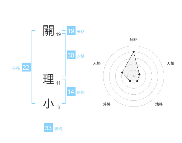 關 理小さんの総格は33画の4点!