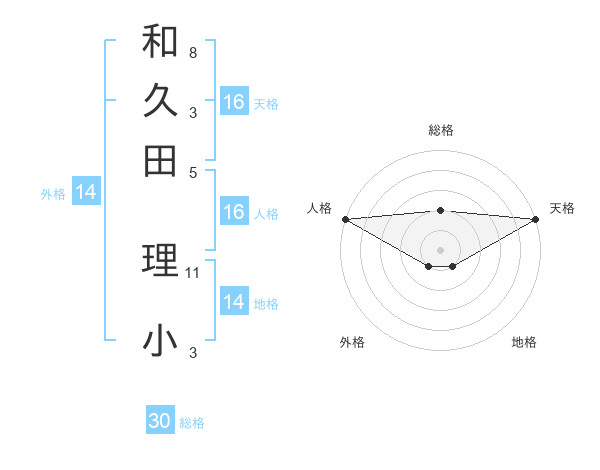 和久田 理小さんの天格は16画の5点!