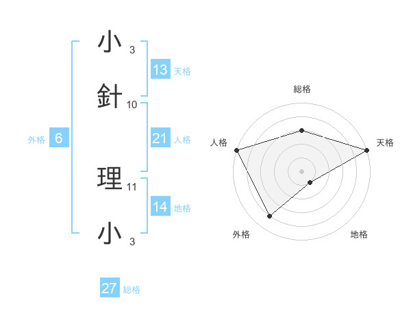 小針 理小さんの天格は13画の5点!
