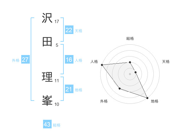沢田 理峯さんの地格は21画の5点!