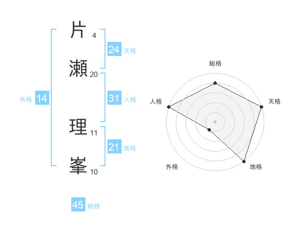 片瀬 理峯さんの総格は45画の4点!
