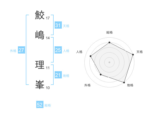 鮫嶋 理峯さんを姓名の画数から五運を鑑定
