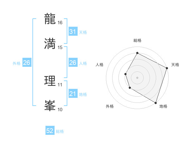 龍満 理峯さんを姓名の画数から五運を鑑定