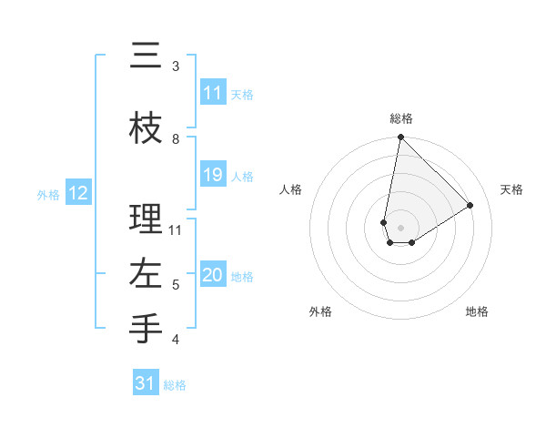三枝 理左手さんを姓名の画数から五運を鑑定
