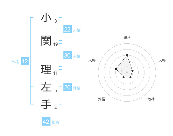 小関 理左手さんの総格は42画の3点!