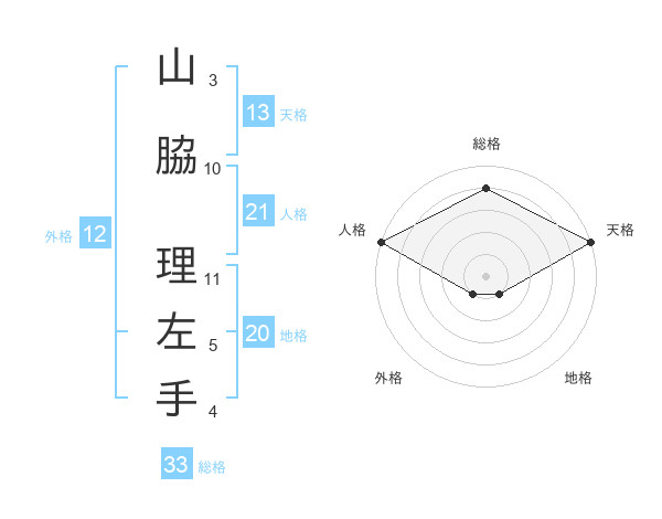 山脇 理左手さんの総格は33画の4点