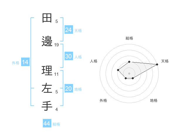 田邊 理左手さんを姓名の画数から五運を鑑定