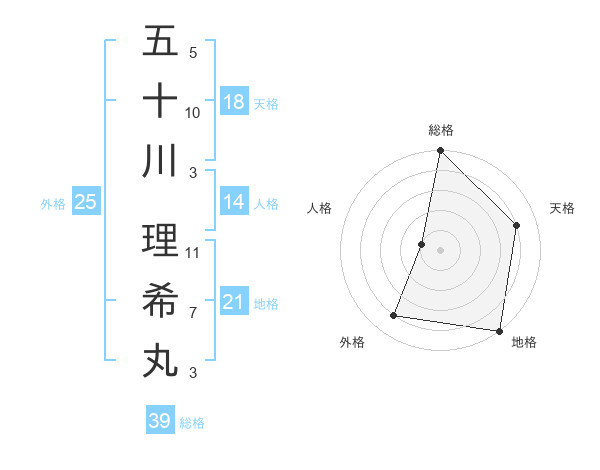 五十川 理希丸さんの総格は39画の5点!