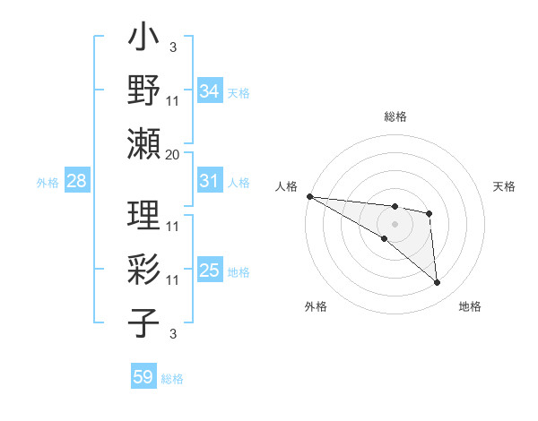 小野瀬 理彩子さんを姓名の画数から五運を鑑定
