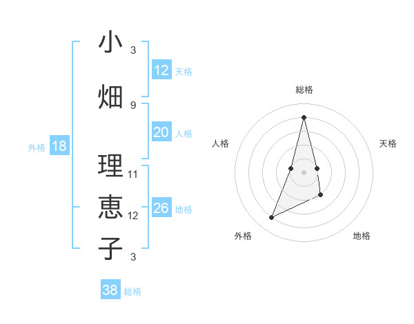 小畑 理恵子さんを姓名の画数から五運を鑑定