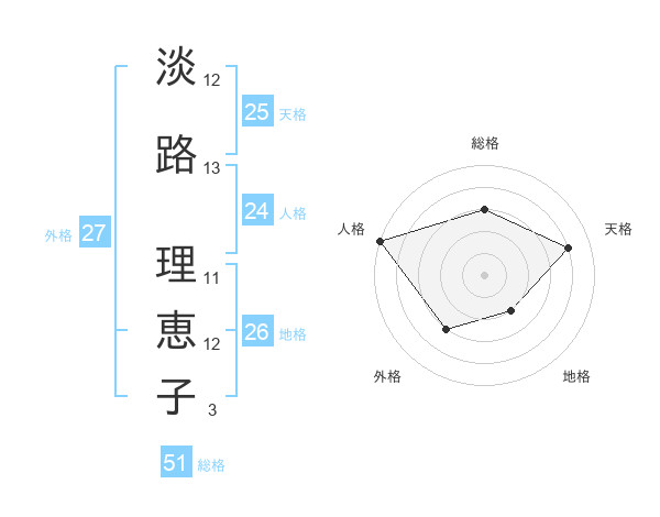 淡路 理恵子さんを姓名の画数から五運を鑑定