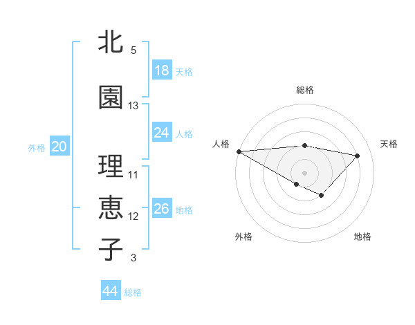 北園 理恵子さんの総格は44画の2点