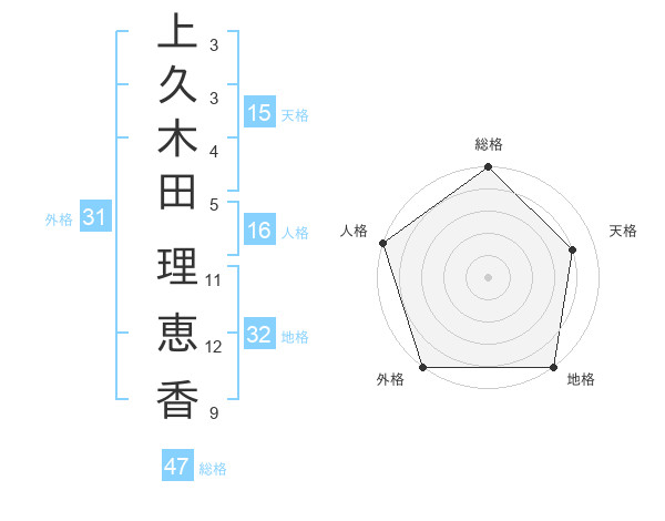 上久木田 理恵香さんを姓名の画数から五運を鑑定
