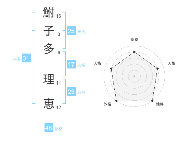 鮒子多 理恵さんを姓名の画数から五運を鑑定