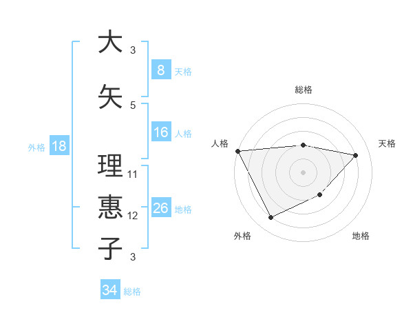 大矢 理惠子さんを姓名の画数から五運を鑑定