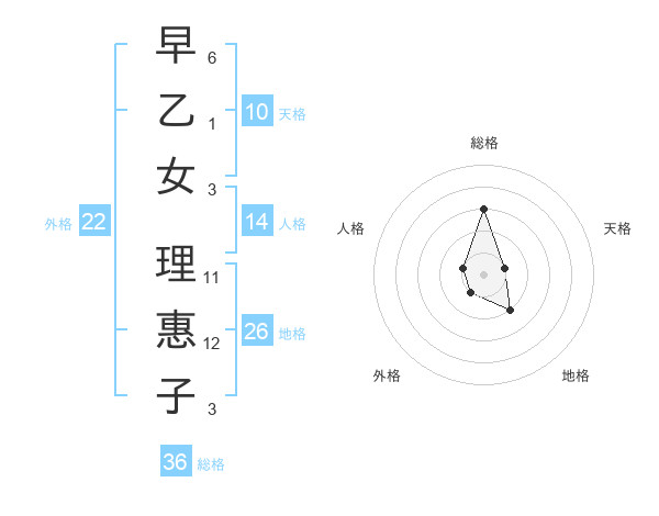 早乙女 理惠子さんを姓名の画数から五運を鑑定