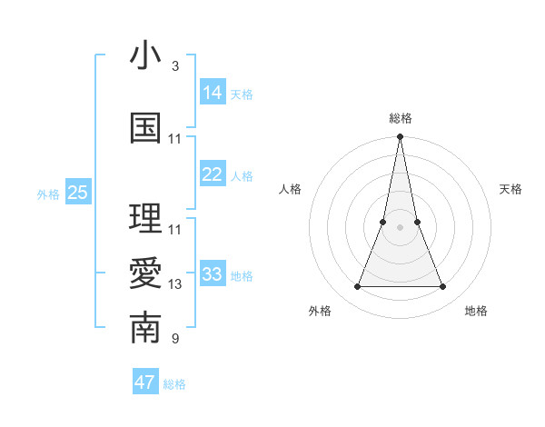 小国 理愛南さんの総格は47画の5点!