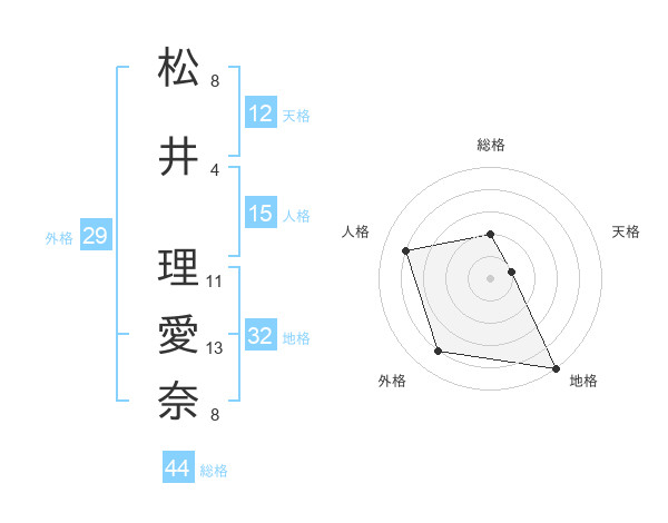 松井 理愛奈さんの総格は44画の2点!