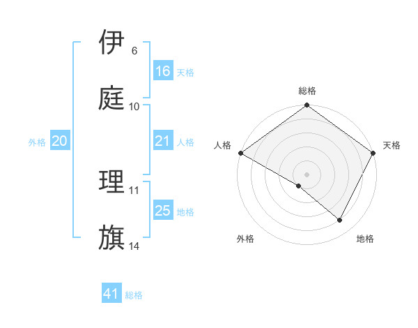 伊庭 理旗さんの総格は41画の5点!