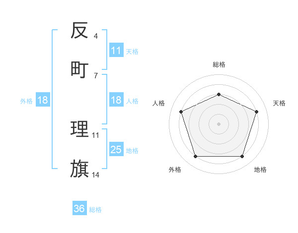 反町 理旗さんの外格は18画の4点!