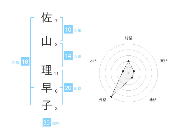 佐山 理早子さんを姓名の画数から五運を鑑定