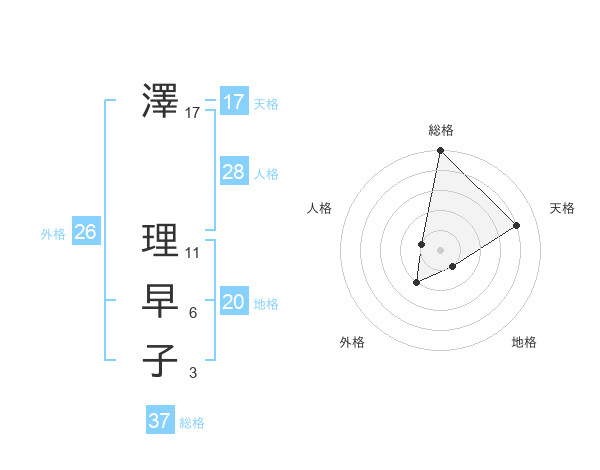澤 理早子さんの天格は17画の4点!
