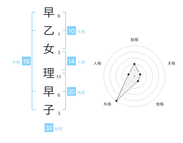 早乙女 理早子さんを姓名の画数から五運を鑑定