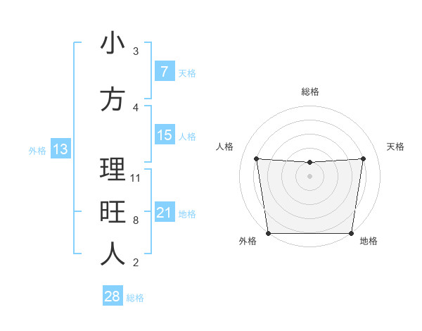 小方 理旺人さんを姓名の画数から五運を鑑定