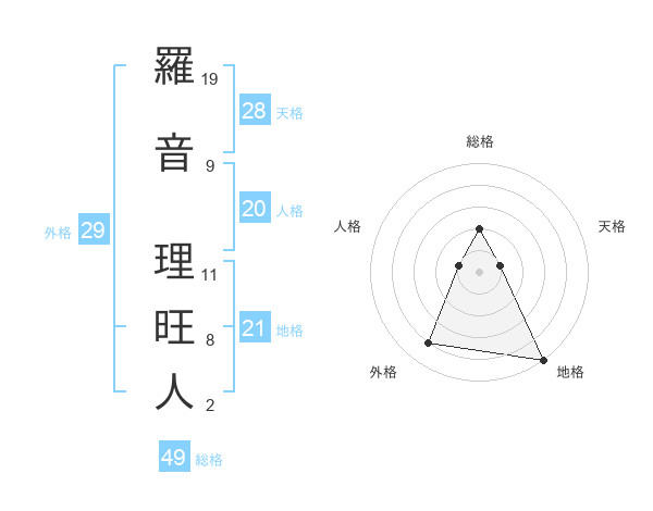 羅音 理旺人さんの総格は49画の2点