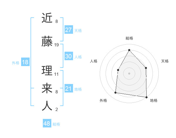 近藤 理来人さんを姓名の画数から五運を鑑定