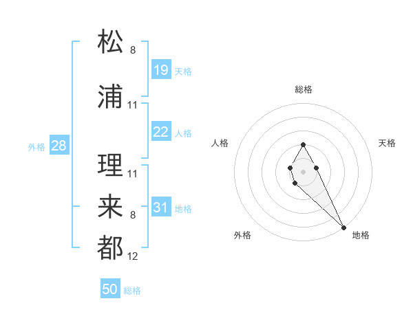 松浦 理来都さんを姓名の画数から五運を鑑定