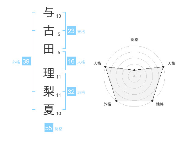 与古田 理梨夏さんを姓名の画数から五運を鑑定