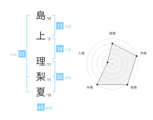 島上 理梨夏さんの天格は13画の5点!