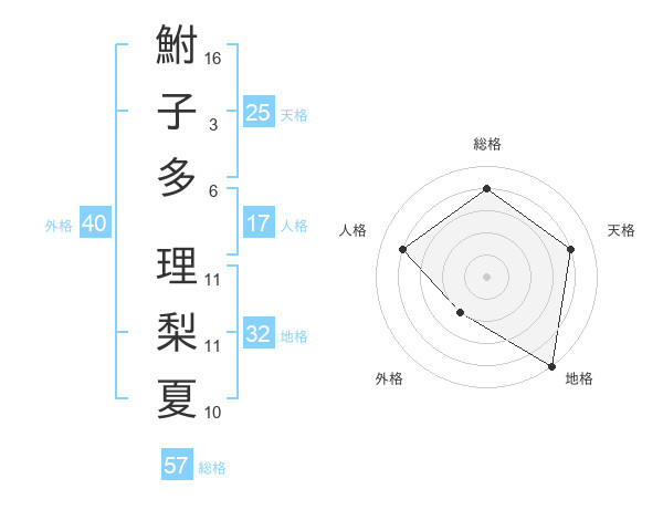 鮒子多 理梨夏さんを姓名の画数から五運を鑑定