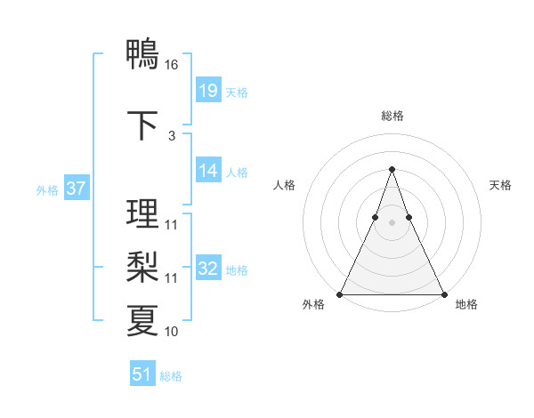 鴨下 理梨夏さんを姓名の画数から五運を鑑定