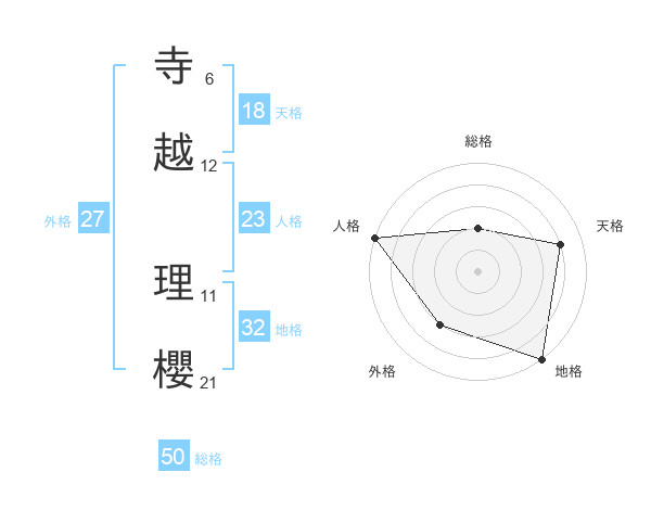 寺越 理櫻さんを姓名の画数から五運を鑑定