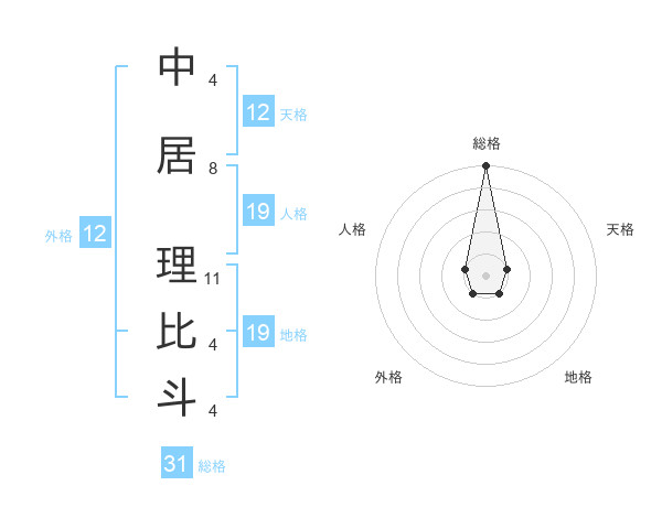 中居 理比斗さんを姓名の画数から五運を鑑定