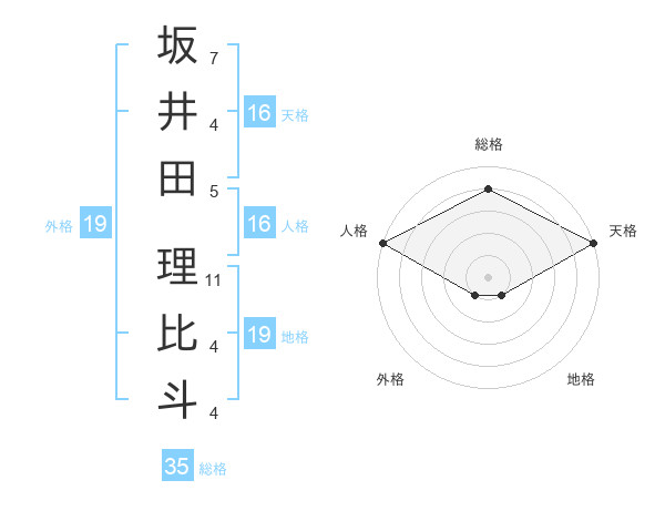 坂井田 理比斗さんを姓名の画数から五運を鑑定