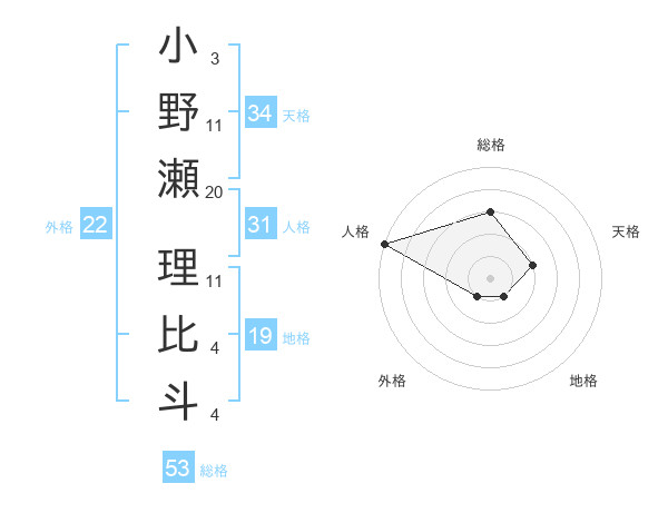 小野瀬 理比斗さんの総格は53画の3点
