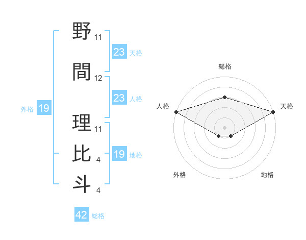 野間 理比斗さんを姓名の画数から五運を鑑定