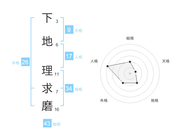 下地 理求磨さんの総格は43画の2点!