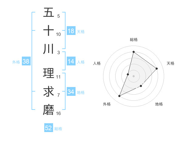 五十川 理求磨さんを姓名の画数から五運を鑑定