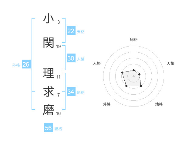 小関 理求磨さんを姓名の画数から五運を鑑定