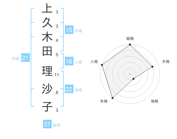 上久木田 理沙子さんを姓名の画数から五運を鑑定